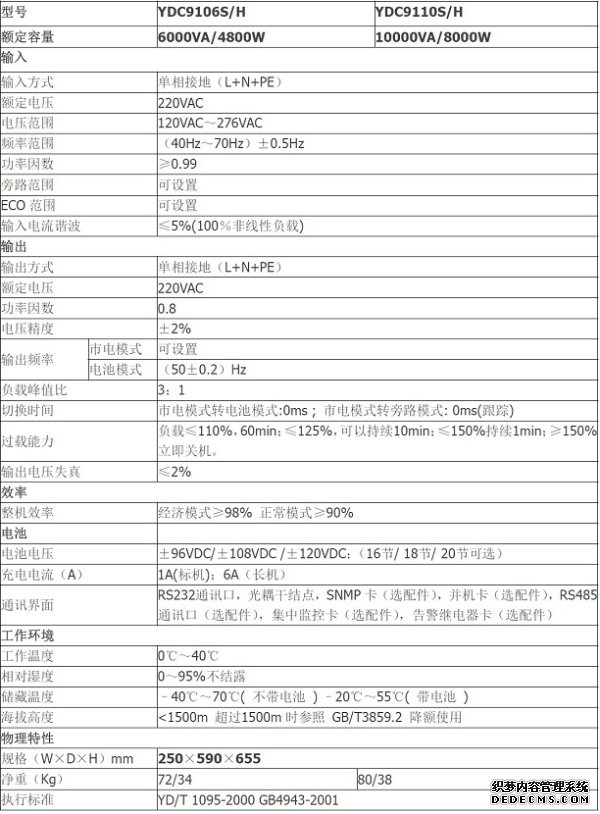 功率范围:10KVA 标准型