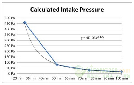 图2:压降与进气口高度曲线为0.2立方米/秒。
