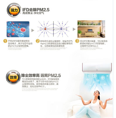 据了解,TCL智能空调开机就能自动检测室内空气,使用高效除尘技术,IFD高压模块,释放自由离子,结合使用高效过滤网,自动去除空气中PM2.5、甲醛、有毒气体,让室内空气瞬间清新。
